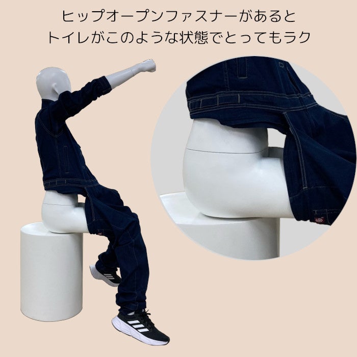 5.ヒップオープンファスナーの機能:つなぎの弱点でもあるトイレを容易にすることができます。