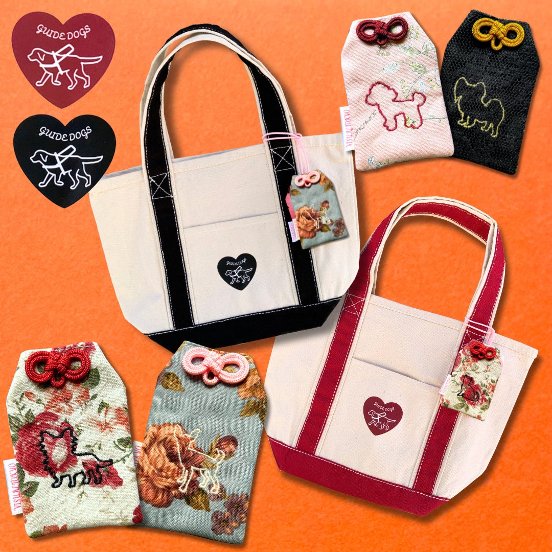 さまざまなデザインの盲導犬グッズを取り扱い中。オリジナルで作成した盲導犬グッズの売上の一部は、盲導犬総合支援センターを通じて補助犬育成及び障がい者の社会参加の支援活動に役立てられます。