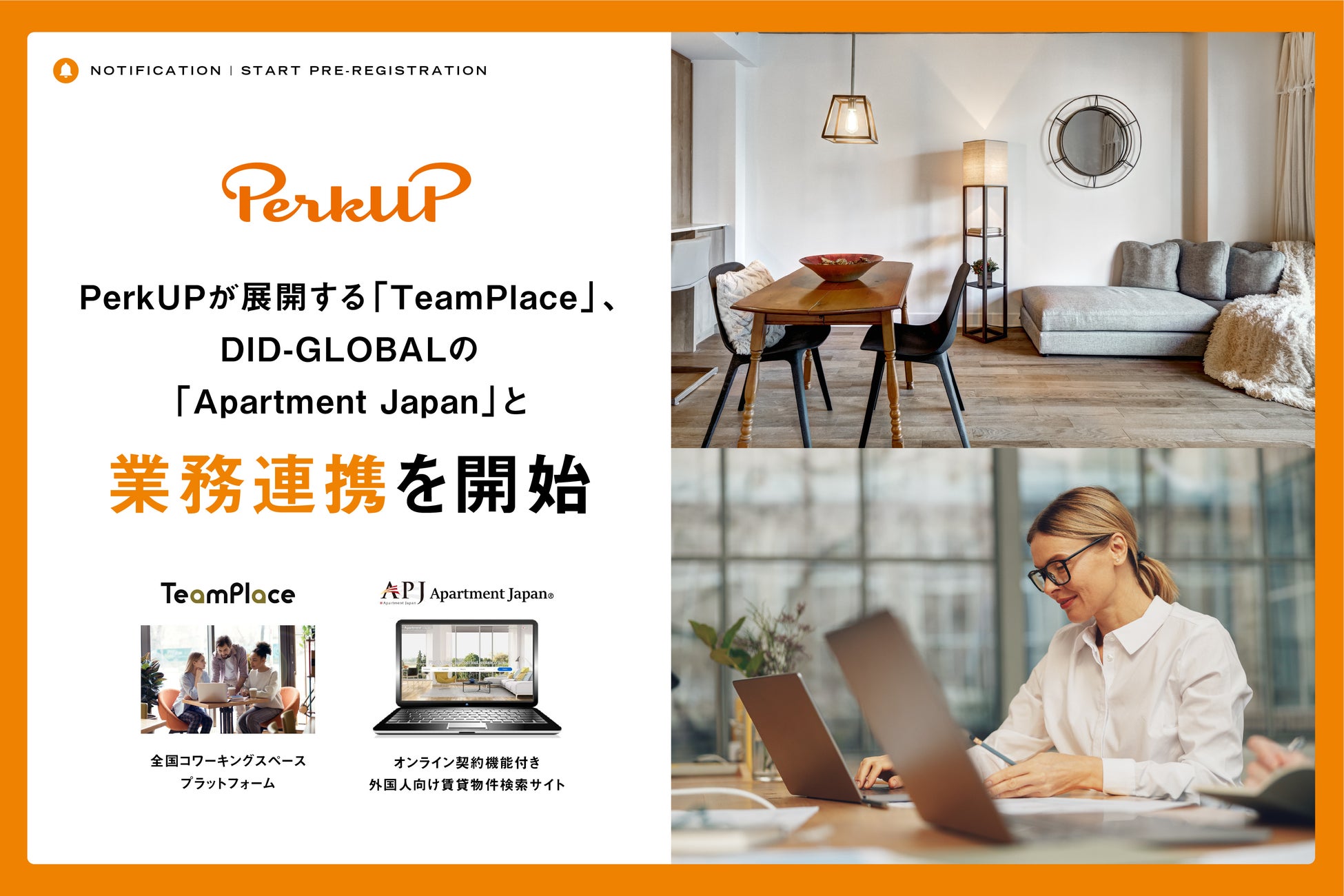 PerkUPが展開する「TeamPlace」、DID-GLOBALの「Apartment Japan」と業務連携