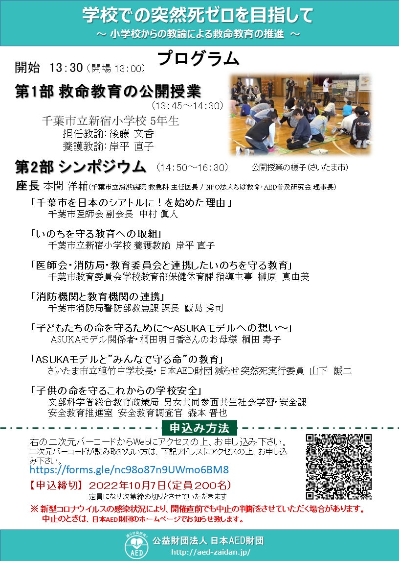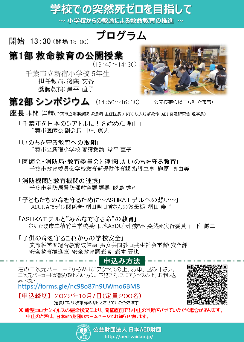 第4回 日本AED財団 School部会フォーラム 学校での突然死ゼロを目指して~ 小学校からの教諭による救命教育の推進 ~を開催いたします