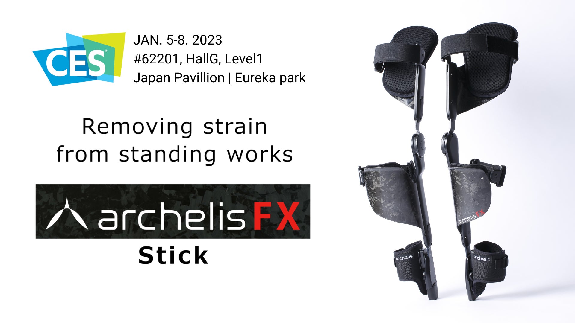 また、展示会会期に併せて開催されるメディア向けイベント「Unveiled」「ShowStoppers」にも出展し、現地来場者、メディアの方々へ新製品「アルケリスFX(エフエックス)スティック」の装着体験を実施します。さらに、現在開発中の自動モード切替機能搭載の「アルケリス アウターフレームモデル(仮称)」も展示します。