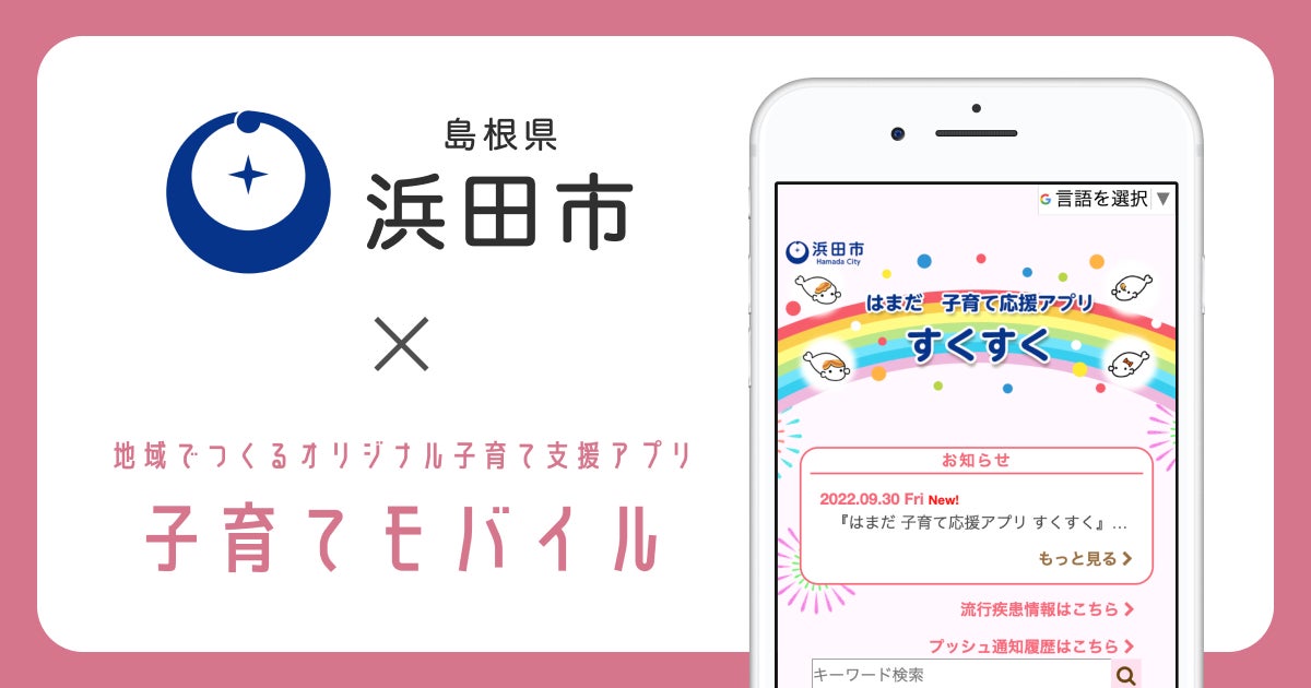 ミラボ、島根県 浜田市で 子育て支援アプリ「はまだ 子育て応援アプリ すくすく」提供開始