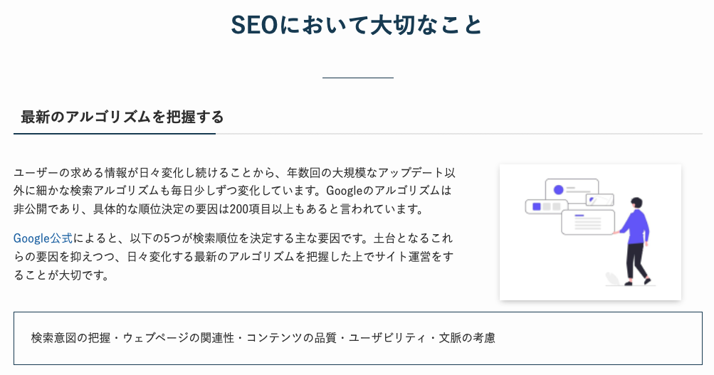 併せて、SEOを意識したサイト運営における重要な点も公開しております。