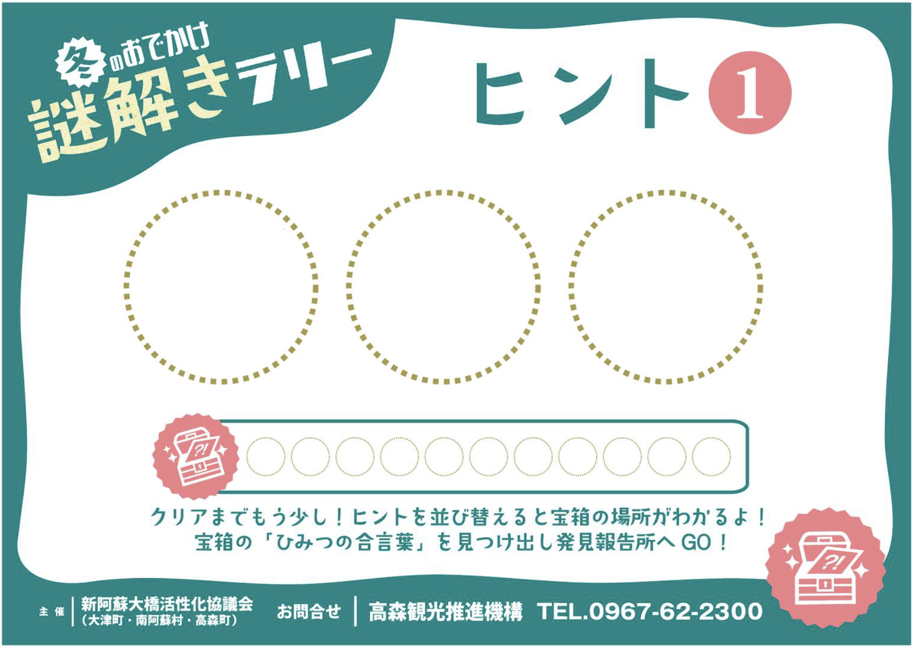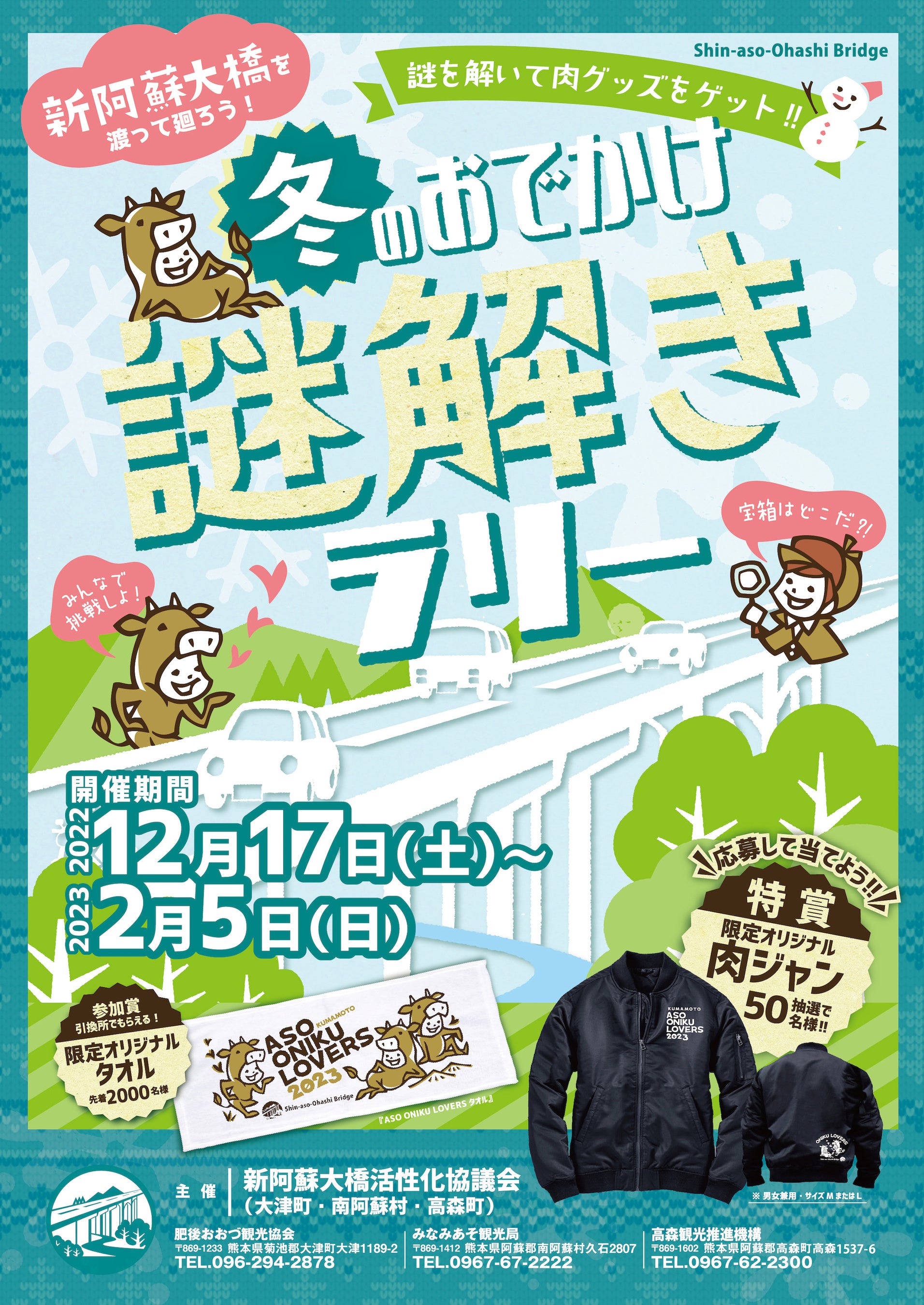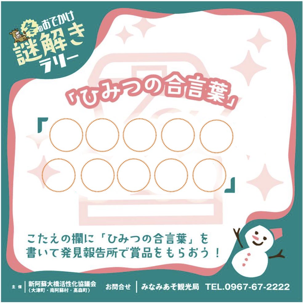 冬のおでかけは謎解きを楽しみながら!大津町・南阿蘇村・高森町が「新阿蘇大橋 冬のおでかけ謎解きラリー」を開催!