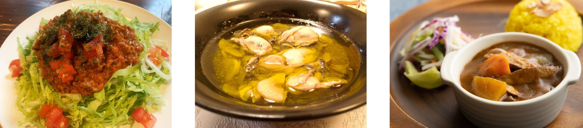 金華サバを使用したカレーや岡山県産のタイのポワレなど4種のメニューを食べ比べ。