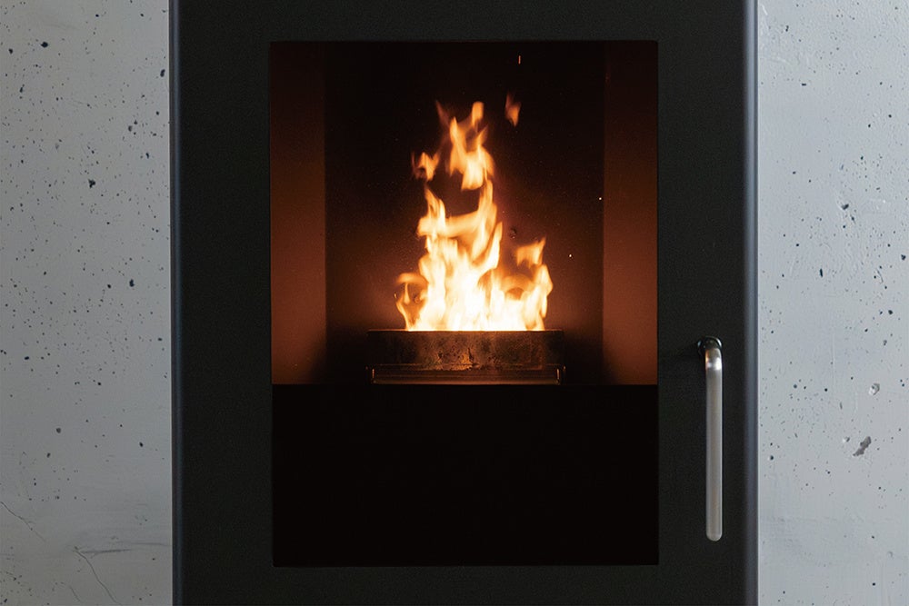 木質ペレットを燃料とする“ペレットストーブ”。暖をとることはもちろん、実際の炎を気軽に楽しむことができます。“ vifu ” はそんなペレットストーブ最大の魅力でもある「炎」にフォーカス。炎の迫力を十分に感じていただけるよう、燃焼窓を最大まで大きく仕上げました。継ぎ目のない1枚の板金からできた扉は、炎の美しさをより引き立ててくれます。