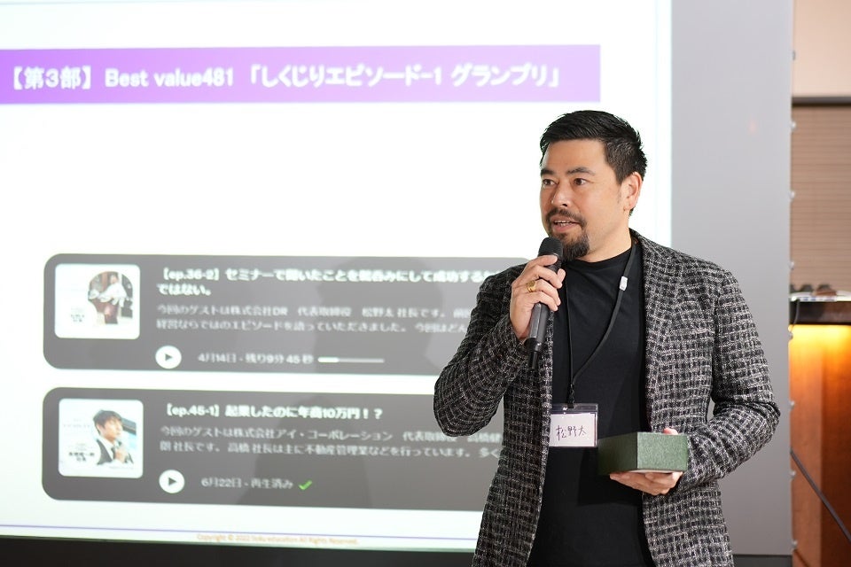 「失敗を価値に変える」をミッションに、経営者の失敗・しくじりエピソードをPodcast番組 value481(バリュフォー)で配信する合同会社4U≪フォーユー≫(本社:兵庫県西宮市、代表:蛯沢渉)は、11月7日(月)第1回しくじりエピソード-1 グランプリを株式会社ダイアナ本社ビル7F (The Core of D)(東京都渋谷区)で開催し、100本以上ある経営者の過去のしくじりエピソードから今年のしくじりエピソードBEST3が決定したことをお知らせします。