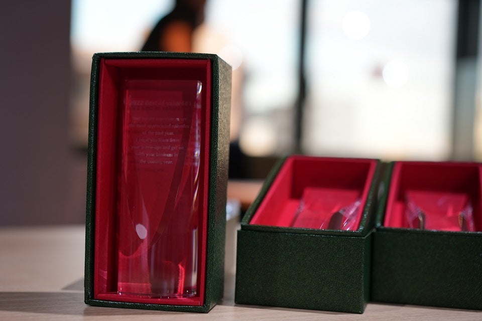 今回受賞した経営者の皆様へはこちらの記念トロフィーを勝手ながら贈呈させていただいております。事務所やオフィス、店舗などへ是非お飾りください。今回受賞を逃した皆様、次回の受賞目指してチャレンジください。
