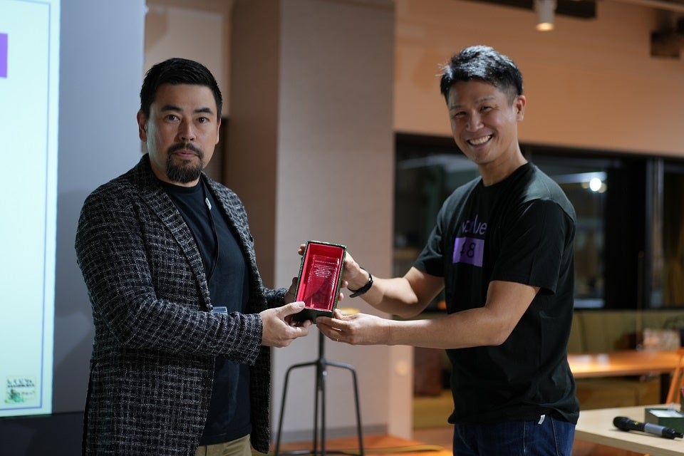 *第2位を受賞した株式会社DR 代表取締役 松野太 社長の表彰の様子です。