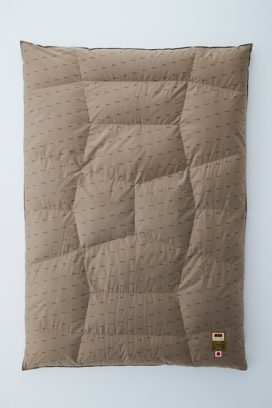 寝袋作りの知見と技術力を活かして誕生した、ペンタゴン形状のデュべ。五角形キルトを組み合わせて配置することで、保温 力のムラを無くすよう設計。封入した 1.2kg の DX ダウンと、寝ている人の体に沿うよう計算した構造により、シングルサイ ズの中でも最高の保温性を実現しました。