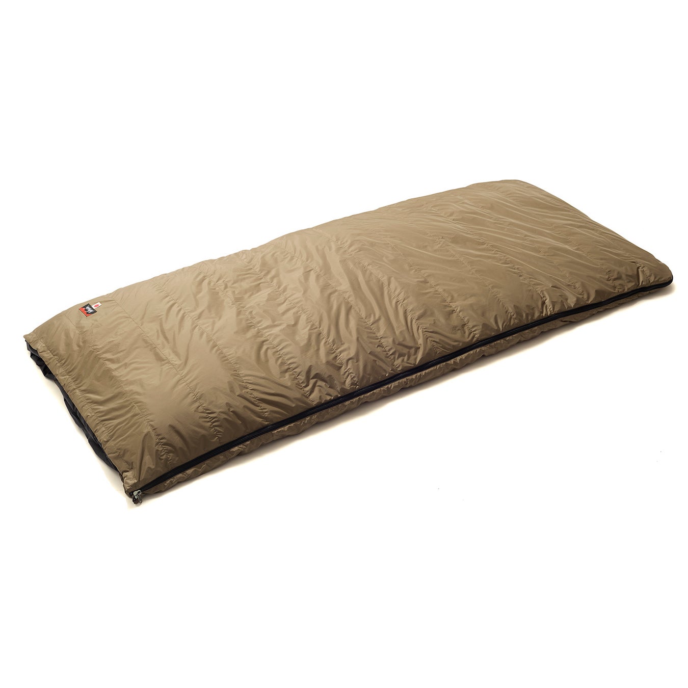 足の先まで開閉できるL字ファスナーを装備しているので、広げると掛け布団にもなります。また、マミー型寝袋をインすることで幅広い季節に対応することができます。
