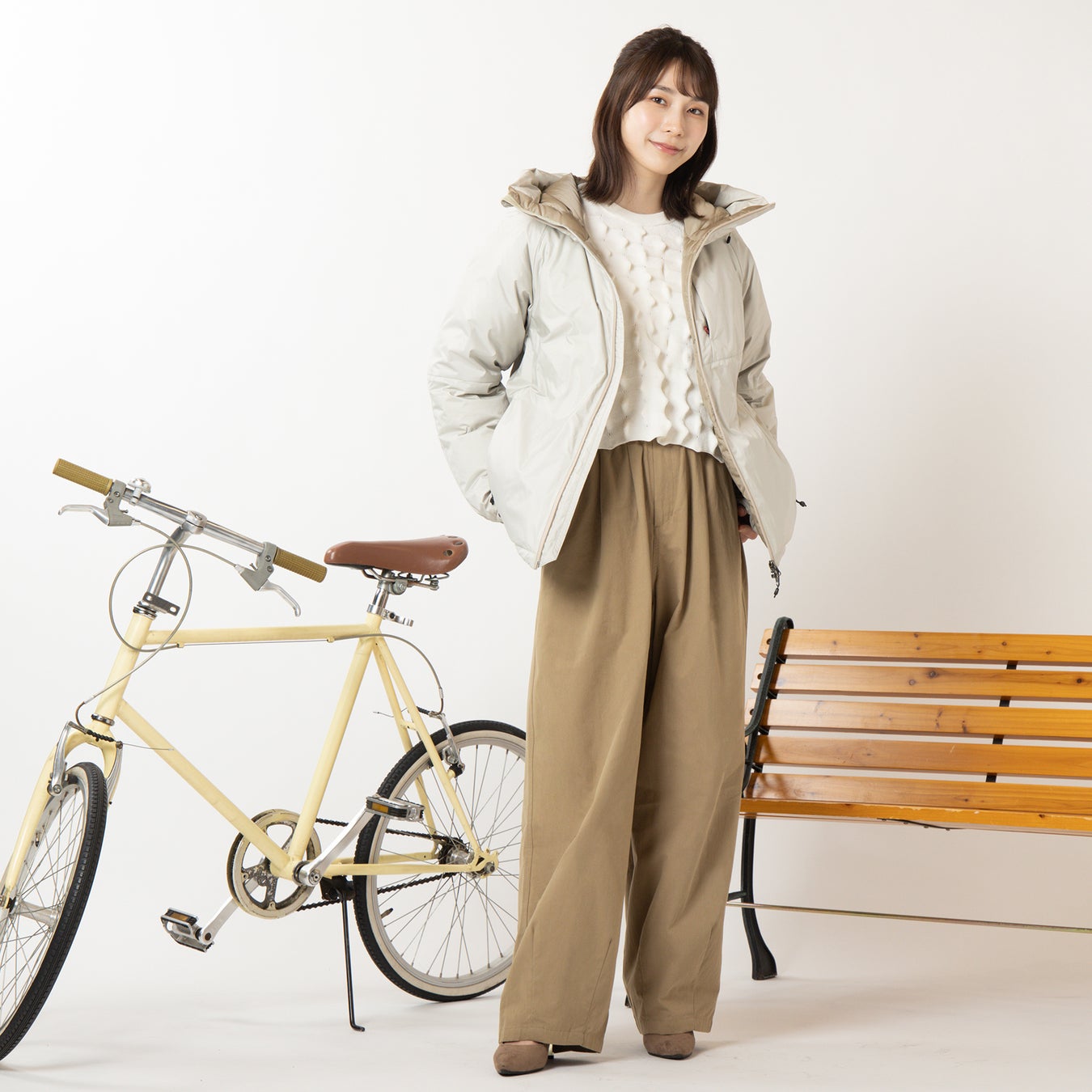 中綿にDXダウン、表地にオーロラテックス®を採用した日本製のオーロラダウンです。メンズモデル同様、顔まわりが立体的でスタイリッシュな新設計デザインを採用することで外気の侵入を防ぎつつ、内側にはダウンのコールドスポットを減らす工夫も施しました。