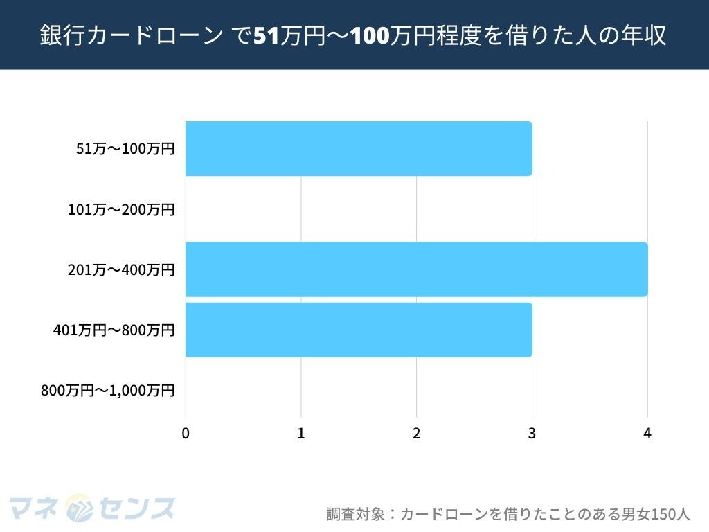■銀行カードローンで51万円以上を借入した人は年収も高い