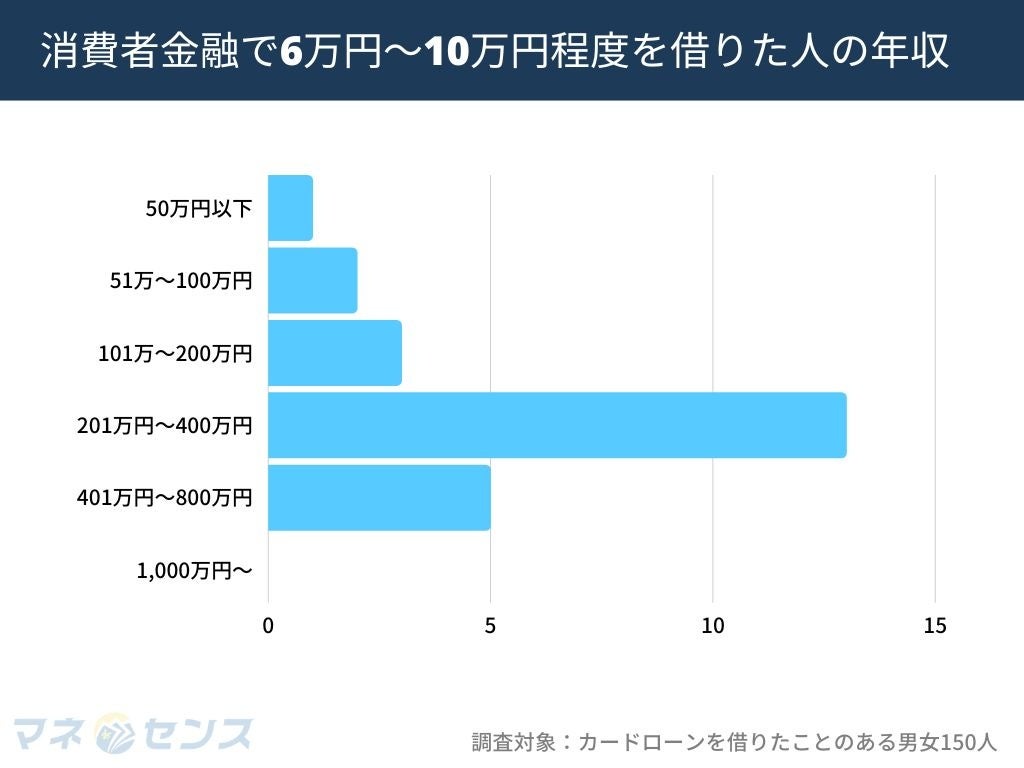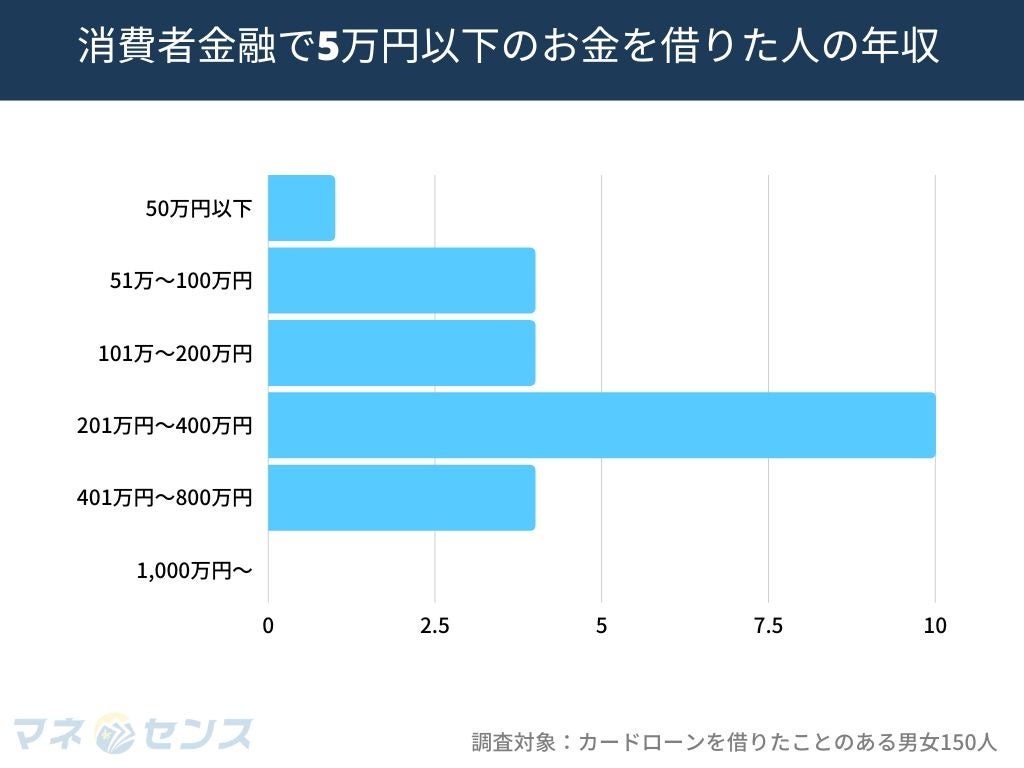消費者金融で10万円以下の金額を借りた人の中には、年収50万円以下の人や、51万円〜100万円の人も少なくないことがわかりました。