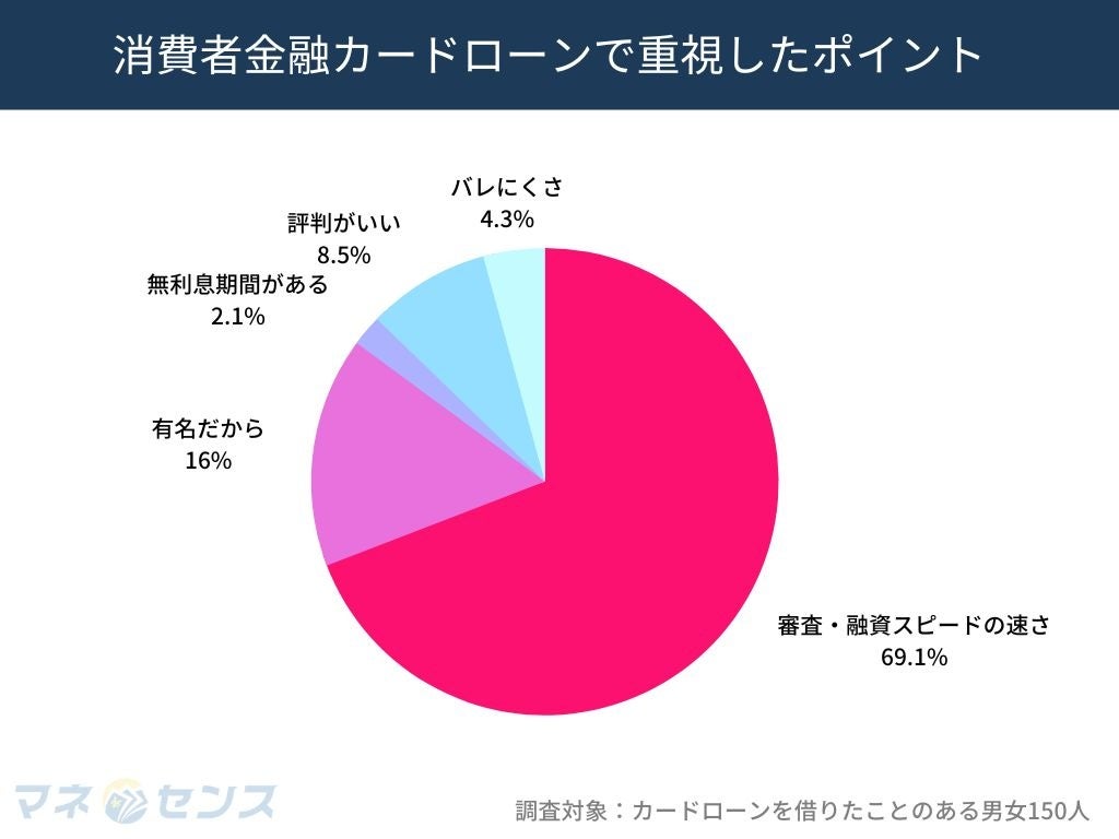消費者金融カードローンを選んだ人が、カードローン選びで重視していたポイントについて、以下のような回答が得られました。