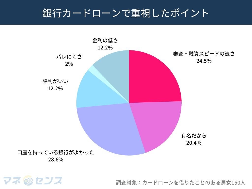 銀行カードローンを選んだ人が、カードローン選びで重視していたポイントは以下のような割合で分かれています。
