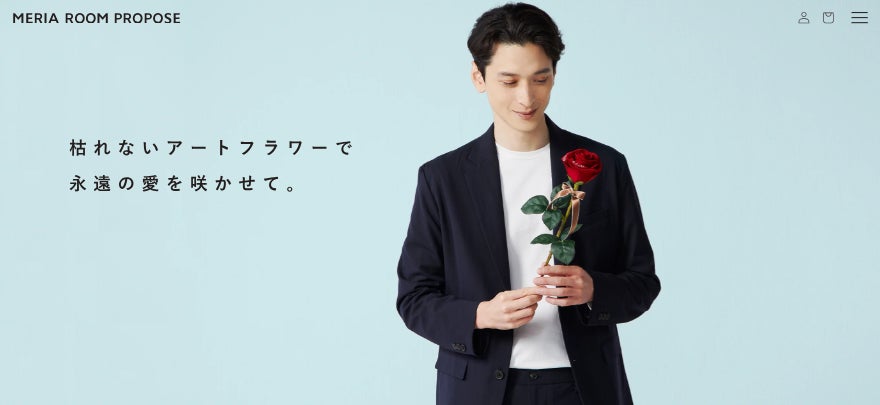 メリアルームはアートフラワー(造花)ギフトの専門ブランドとして2012年冬に誕生しました。プロポーズ利用が9割を占める当社は、創業10年を迎えた2022年に「次の10年に届ける、新しいフラワーギフトの形」と題して、オンラインストアのリニューアルプロジェクトを始動、今年の5月にフルリニューアルオープンいたしました。