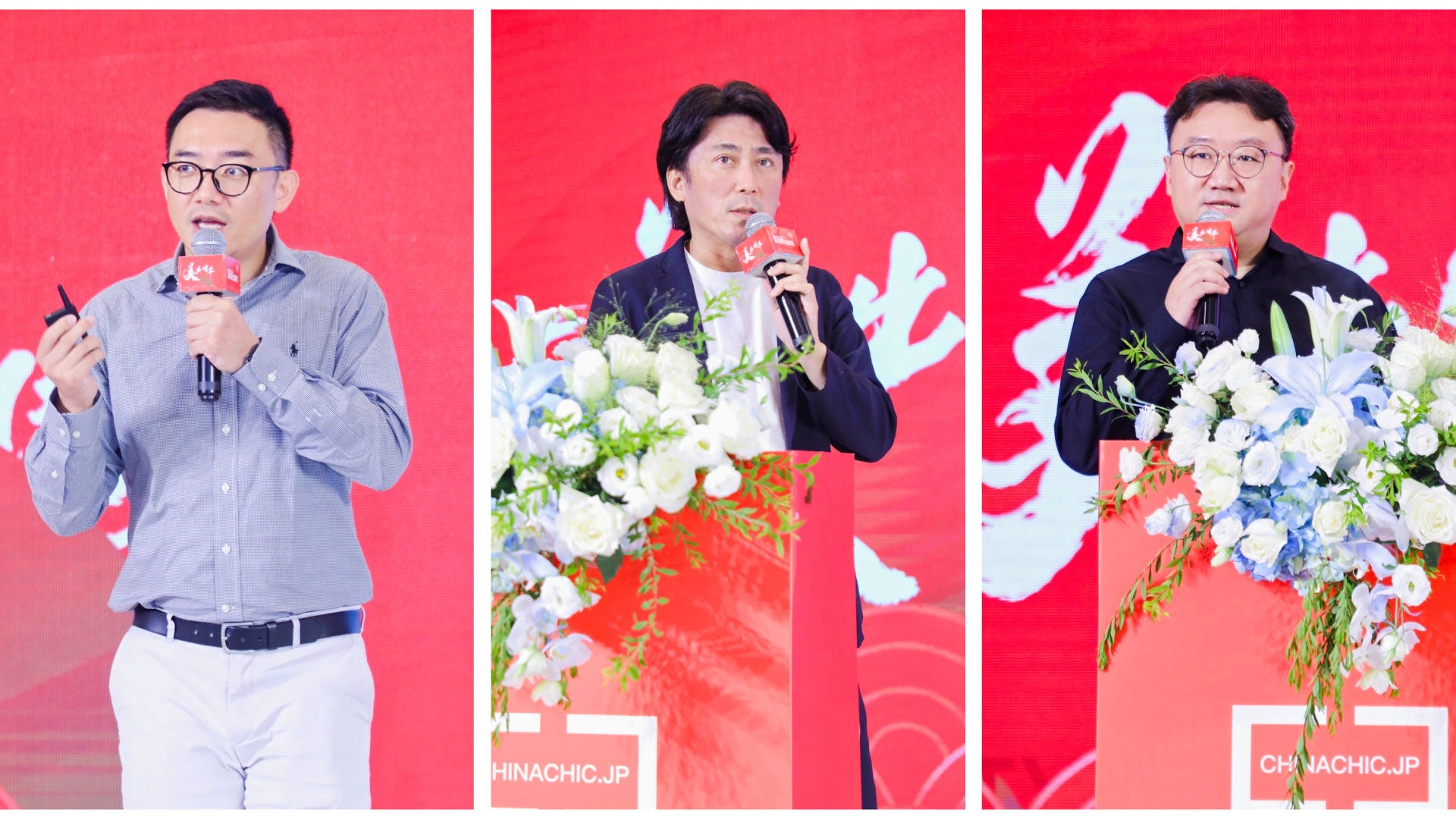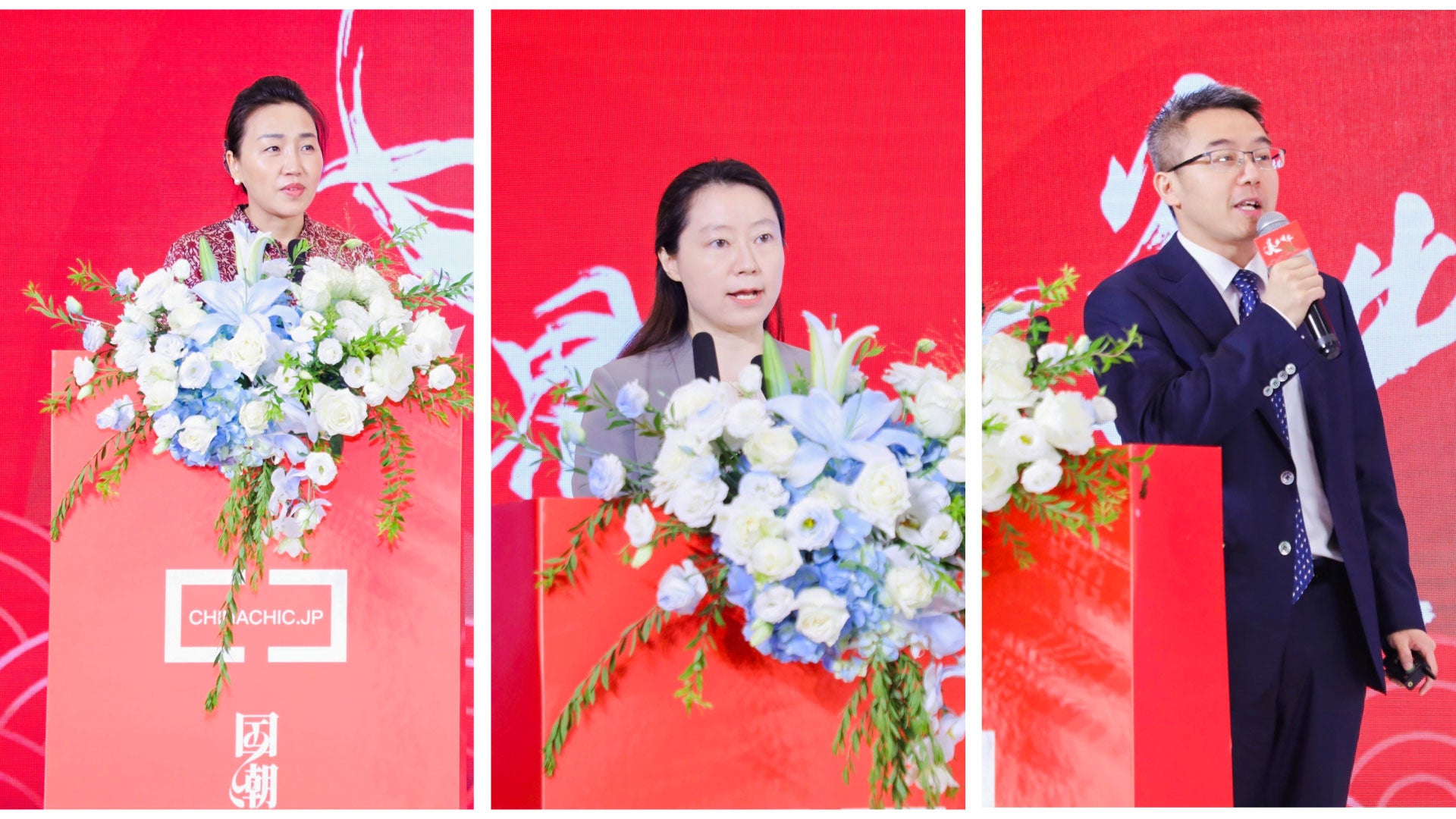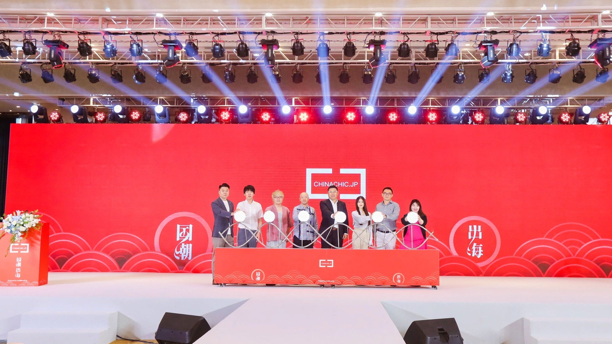 上記は、日本で国潮(英語:CHINACHIC)ブームを起こすために全面的に支持していただいている、日本チーム。写真左から中国の物流QITIAN総経理金 明瀚氏、CC Holdings代表取締役董漢 伍氏、MoldBreaking FOUDNER&CEO郭兮若氏、istyle代表取締役社長遠藤 宗氏、三井物産上海 流通事業部部長 佐藤 慶典氏、BLANC AMOUR FOUNDER&CEO原 朝未氏、光文社 役員直下 リレーション開発室部長 桐野安子氏たちは来場ゲストの各業界重鎮代表として一斉に登壇。