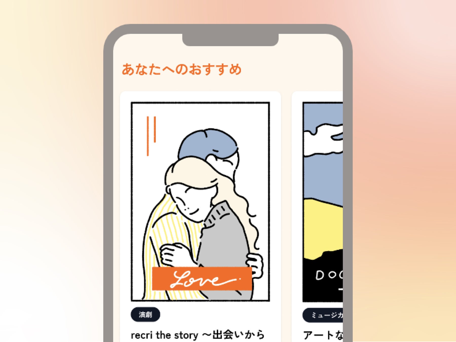 「感性溢れる、刺激的な世の中を」を掲げ、厳選されたおすすめ作品の中から、毎月舞台を観られる「チケットのサブスクrecri」を運営しています。敷居の高さを感じている鑑賞初心者と、新しい顧客との出会いを必要としている興行主をマッチングすることで、両者の課題を解決しています。多くの大手興行主の皆様と連携し、会員数も急拡大中しています。エンターテインメントや芸術には人生を豊かにしてくれる力があると信じています。心がうごく素晴らしい作品との出会いを、より多くの方にお届けするべく、recriは新時代のエンターテインメントプラットフォームとして進化してまいります。