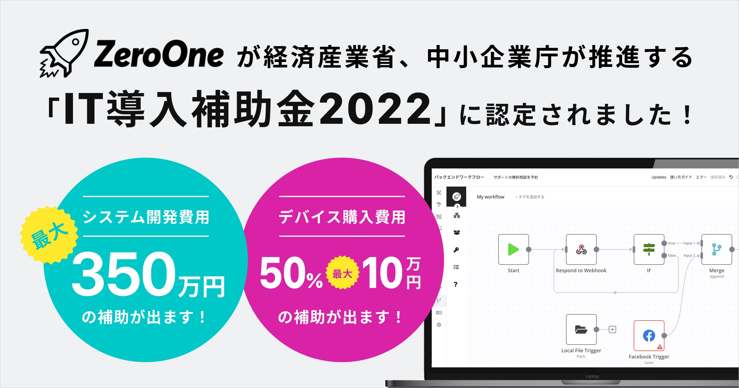 ノーコードプラットフォーム『ZeroOne』が「IT導入補助金2022」の対象ツールに認定