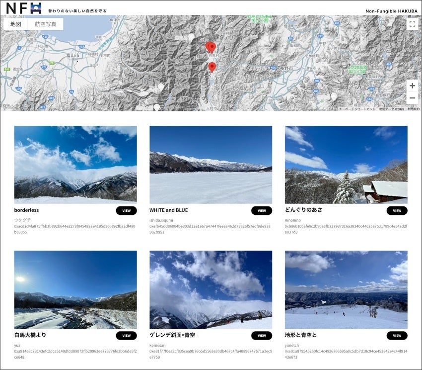 今回の実証実験では、今シーズンの冬の白馬村の写真を募集し、その写真に紐づく撮影情報(時刻・位置など)をブロックチェーンに記録し特設サイトで公開。写真投稿者へは証明書としてNFT(Non-fungible Token)の発行を行いました。