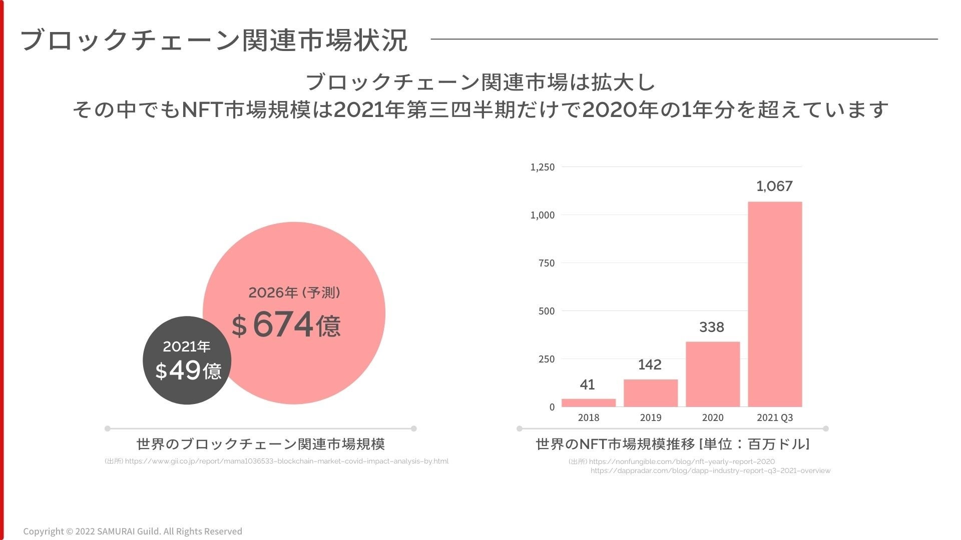 NFT市場においては、2021年の第三四半期だけで、2020年1年分の約3倍と、大幅に上回りました。