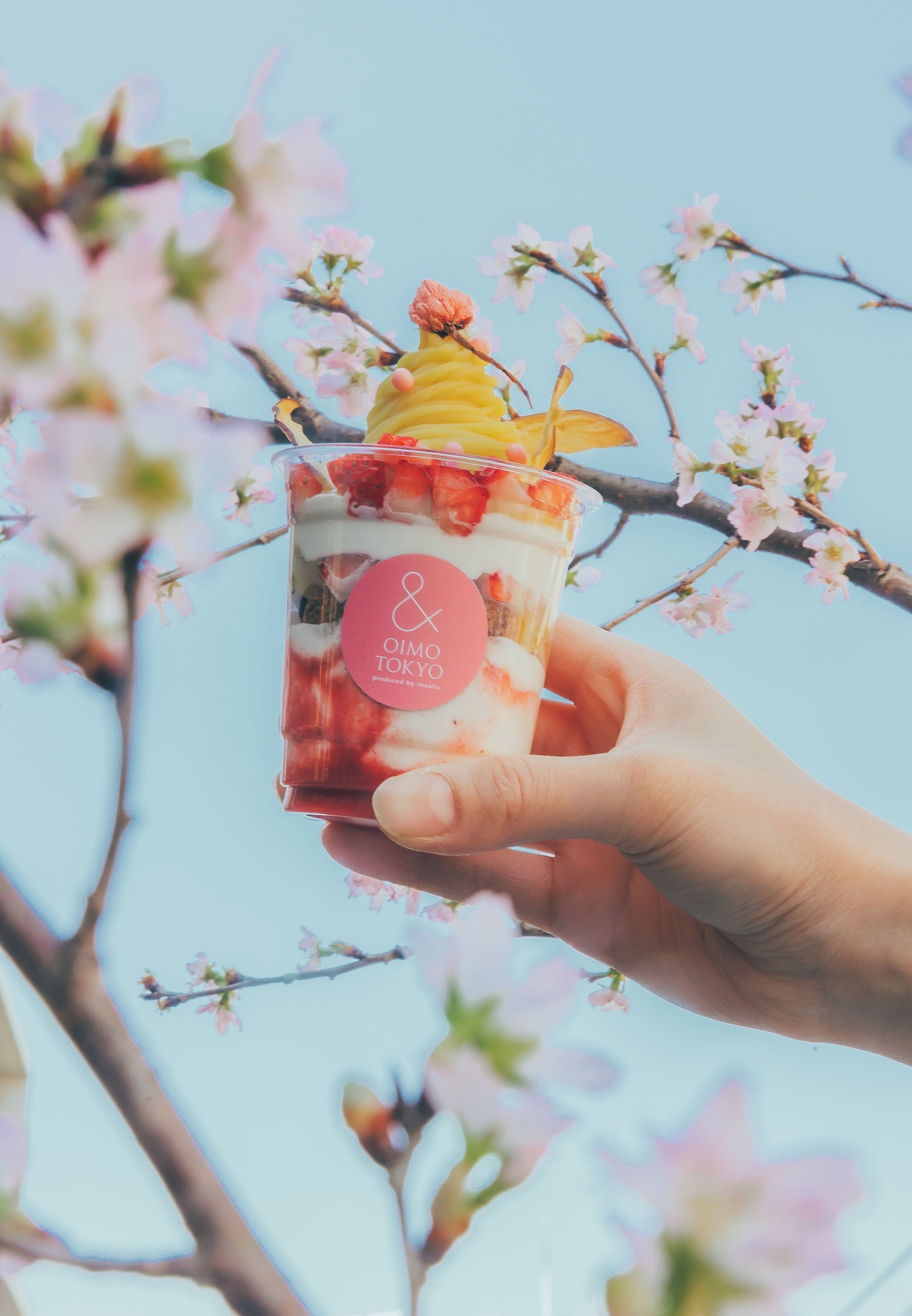 全長約4kmにわたり約800本のソメイヨシノが咲き誇る全国一位の人気お花見スポット、目黒川沿いの桜並木。昼は春風に吹かれる中で壮大な光景を楽しみ、夜には夜桜が美しくライトアップされピンクのぼんぼりが点灯することで目の前には幻想的な光景が広がる、春のうららの目黒川。この度、全国各地から大勢の花見客で賑わうお花見の名所のすぐ近くにある、熟成蜜芋スイーツ専門店《& OIMO TOKYO》の旗艦店《& OIMO TOKYO CAFE 中目黒》では、3月1日(金)から、お花見シーズン限定蜜芋の桜スイーツを販売いたします。厳選したさつまいもやこだわり抜いた食材を使用し、味はもちろん、見た目も可愛らしいさつまいもスイーツで目黒川の桜シーズンを彩ります。