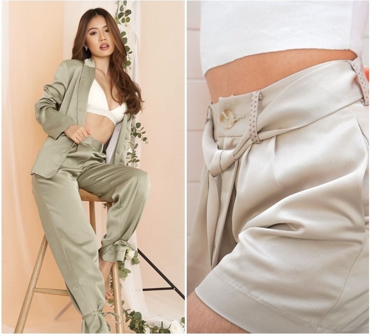 好みやシーンに合わせて、ショート丈とロング丈で選べるパンツが特徴的。ロング丈は、裾を紐で結べるデザインで女性らしさを演出。ジャケットとパンツはばら売りのため、好きな組み合わせで、自分好みのセットアップコーディネートが叶います。裏地にはブランドの特徴である和柄を採用。春らしいカラーリングも特徴的です。