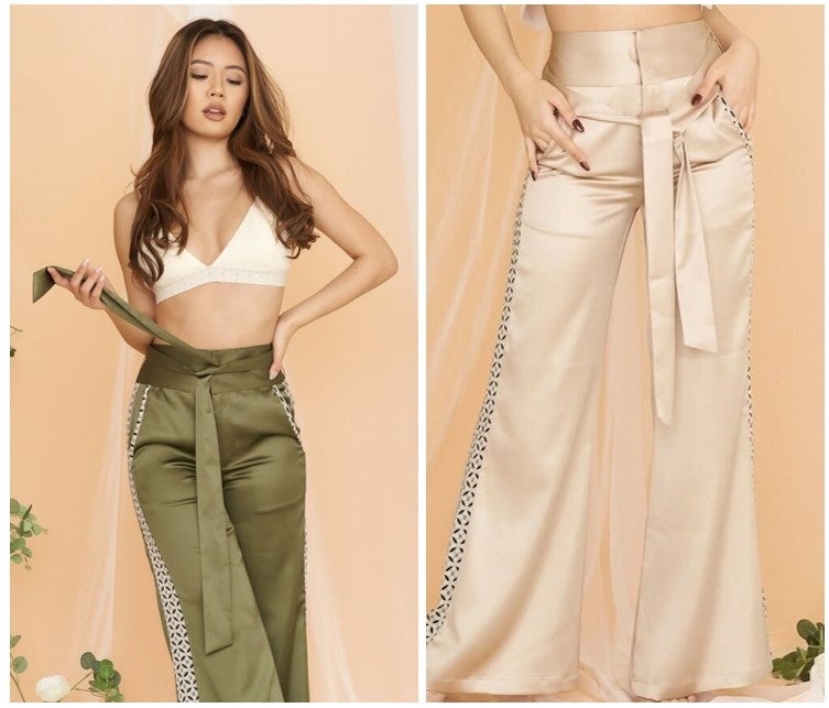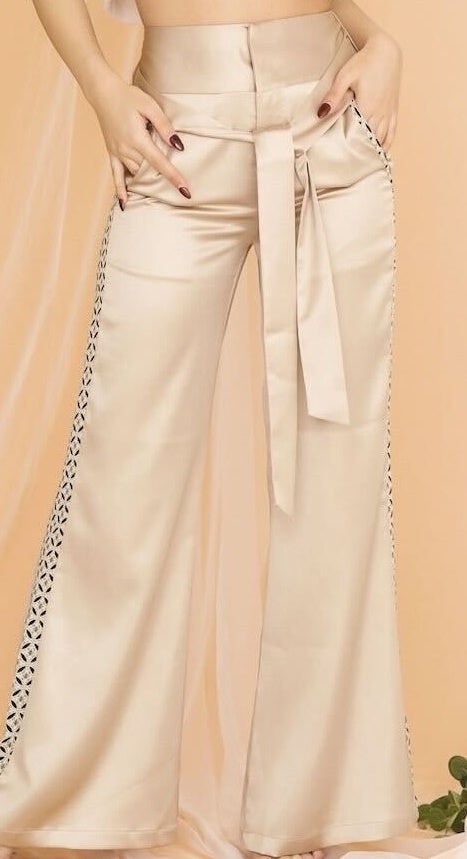 柔らかく肌触りの良いサテンプリーツパンツ。