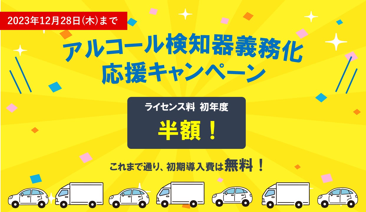 クラウド型飲酒検査システム「Cagou IT点 for 白ナンバー」の初年度のライセンス料が半額になるキャンペーンを12月28日(木)まで開催
