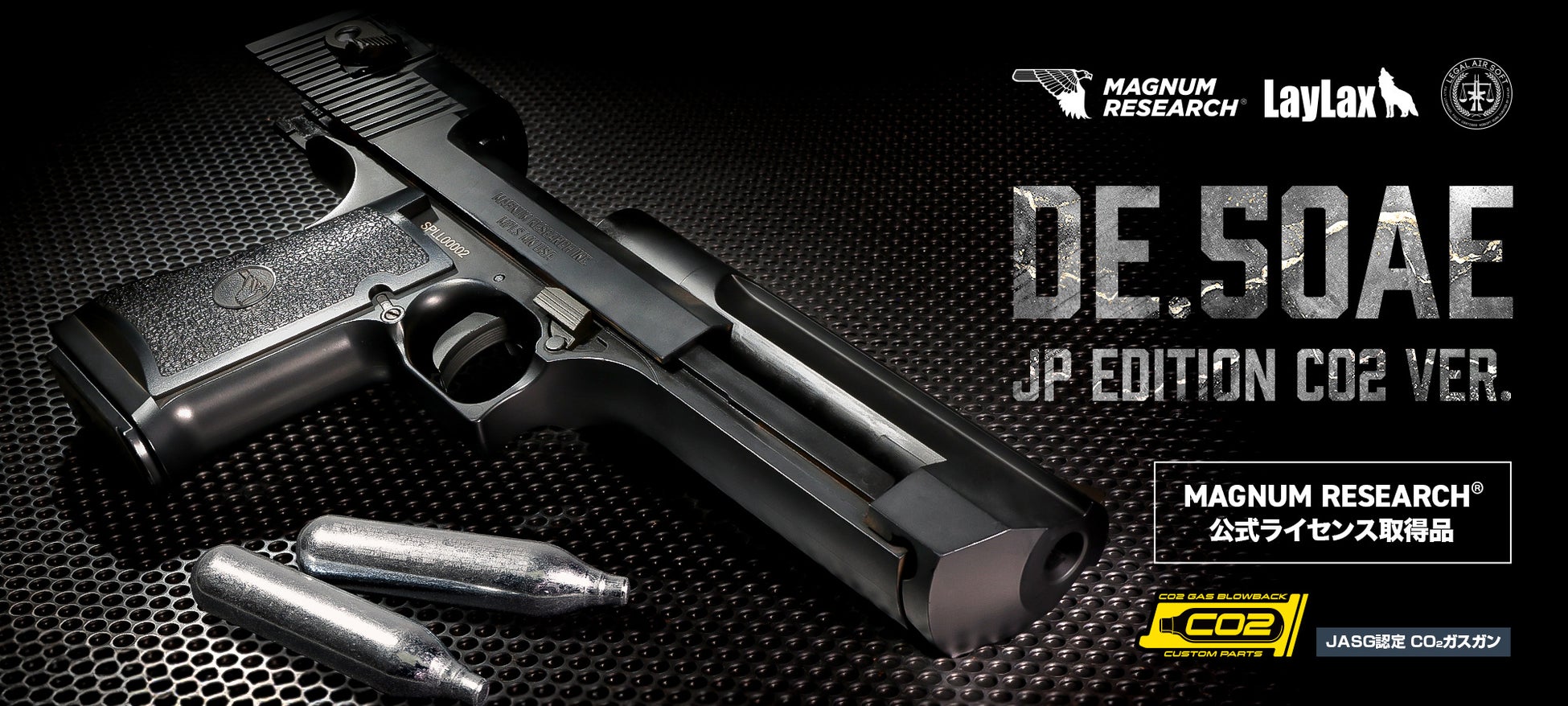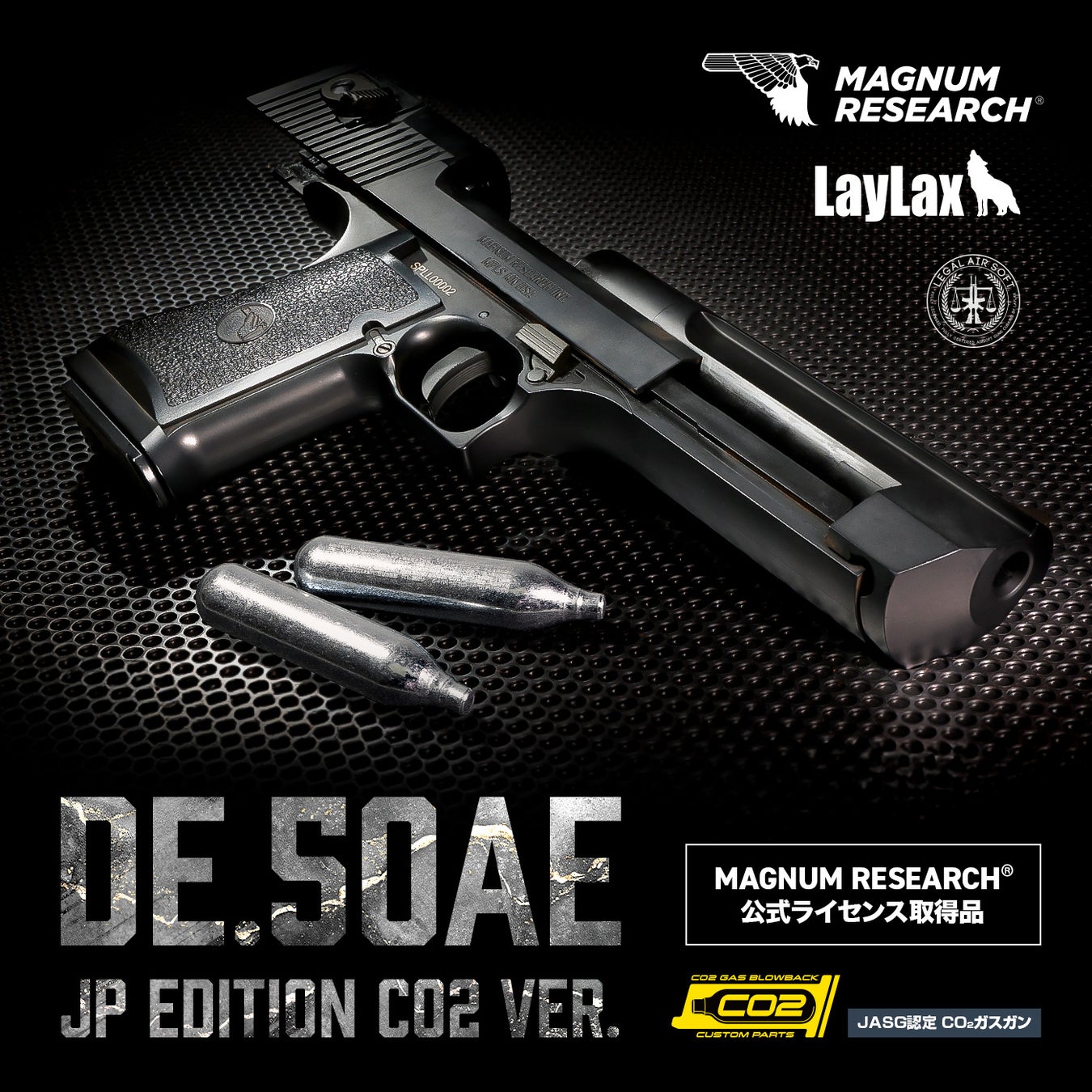 エアソフトガンパーツメーカーLayLaxが「DESERT EAGLE(デザートイーグル).50AE JPエディション CO2ver. BK」を遂に発売。米MAGNUM RESEARCH®の正式ライセンスを取得したリアル仕様のCO2ガスブローバックガンです。
