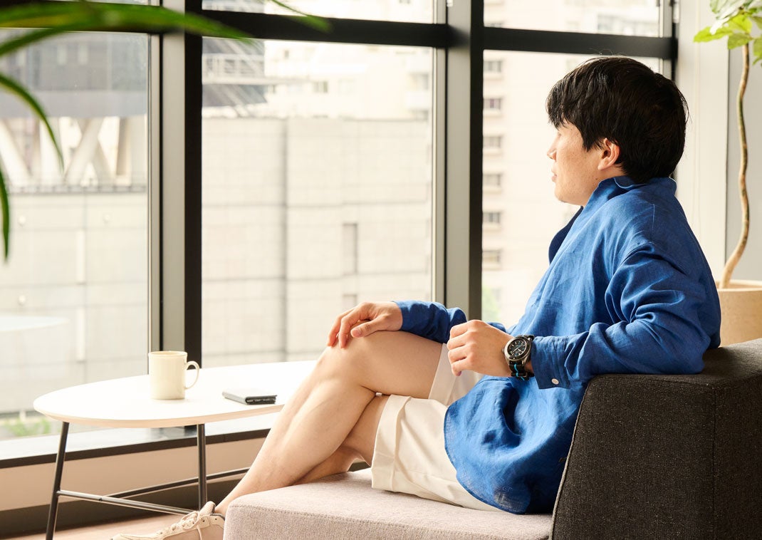 (コロニープールサイドシャツ 30,800円、ドレスボーダーT 31,900円、BE ABLE ショーツ 26,400円(Vandori)、他スタイリスト私物)