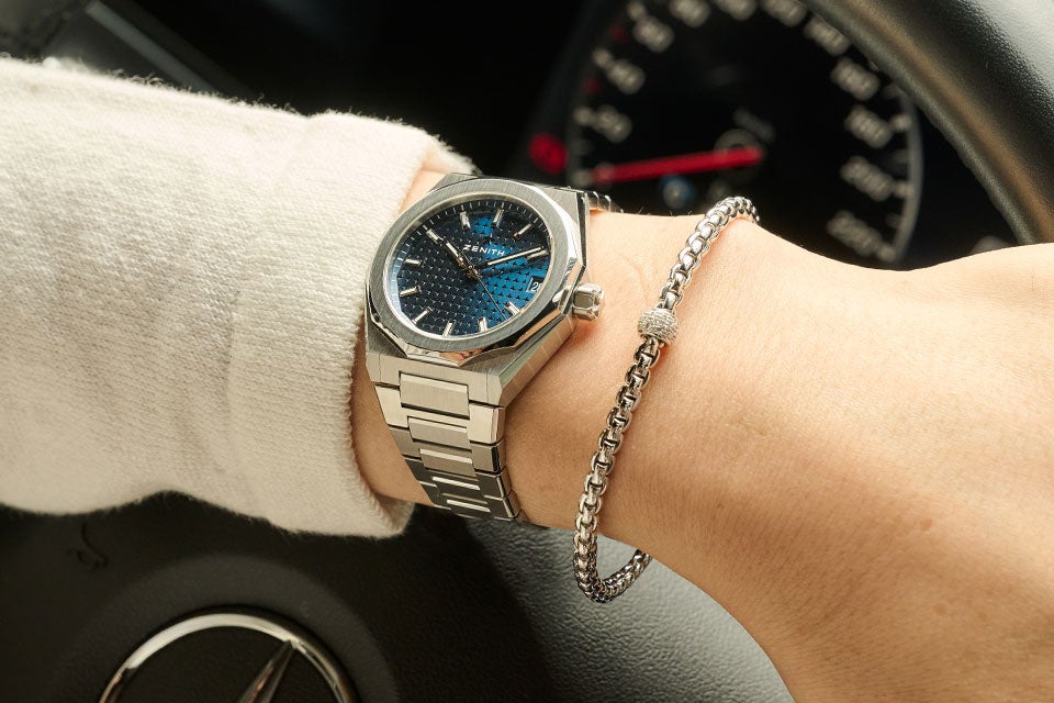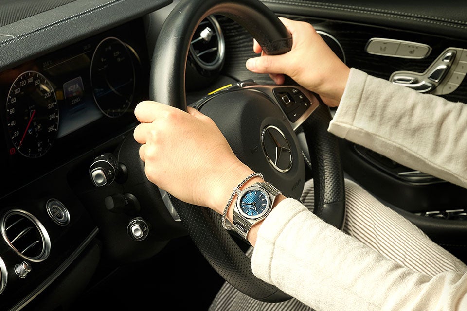 1960年代に生まれたスポーツモデルのスタイルを現代的にアップデート。キレのある斜面を持つケースからブレスレットへと流麗に繋がるデザインは、美しい仕上げによって、さらに立体感を強める。ケース径はユニセックスサイズの36mmを選択。さりげない佇まいだが、ダイヤルの深みのある色合いが腕元に個性を作ってくれる。ブルーのラバーストラップも付属する。自動巻き、SSケース、ケース径36mm。1,078,000円(税込)