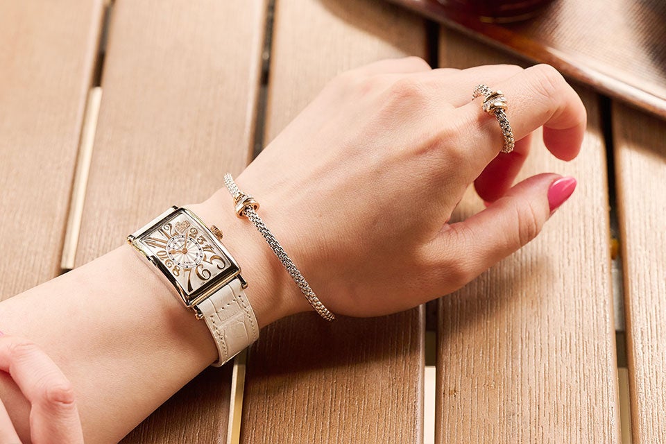 アールデコ様式の高層建築が立ち並ぶニューヨーク・マンハッタンの郊外にある高級保養地、ロングアイランド島に由来するモデル名をもつ優雅な人気モデル。二針ノンデイトのシンプルな機構ながら、ビザン数字などのダイヤルデザインで華やかな世界を作る。ハート形のダイヤモンド装飾も美しく、時間の流れを華やかに演出してくれる。クオーツ、SS×18KPGケース、ケース縦32.5×23mm。1,815,000円(税込)