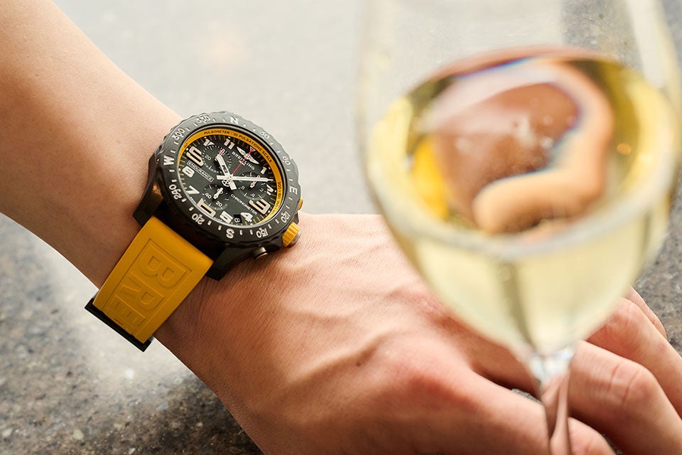 軽くてタフなアスレジャーウォッチ。アスレジャーとは、「アスレティック」と「レジャー」からなる造語で、カジュアルなスポーツウェアをファッションに取り入れること。この時計はまさしくその時計版であり、本格的なスペックでありながら、軽やかに時計を楽しむシーンに向いている。だからこのポップな配色が利くのだ。ケース素材は超軽量のブライトライト。クオーツ、ブライトライトケース、ケース径44mm。440,000円(税込)