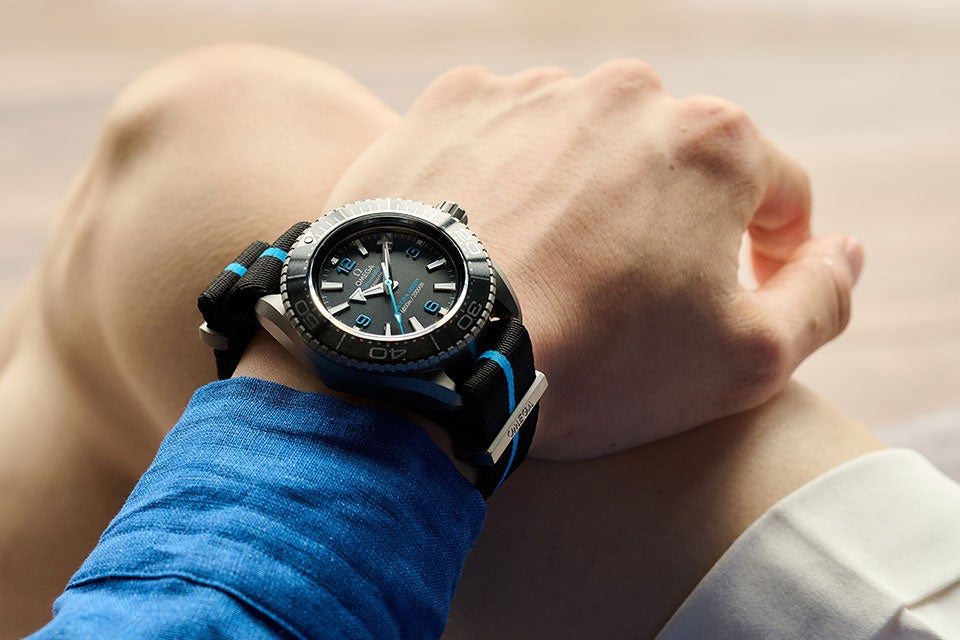 6000m防水のハイスペック・ダイバーズウォッチ。驚異的な防水性能だが、日常使いできるサイズ感に収めているのも見事であり、高気密のケース構造のおかげで、ヘリウムガスのエスケープバルブを不要にしている点も、優れた時計である証明となる。高精度と高耐磁を備え、スイス連邦計量・認定局(METAS)認定に合格したマスター クロノメーター認定を取得している。自動巻き、Tiケース、ケース径45.5mm。1,947,000円(税込)