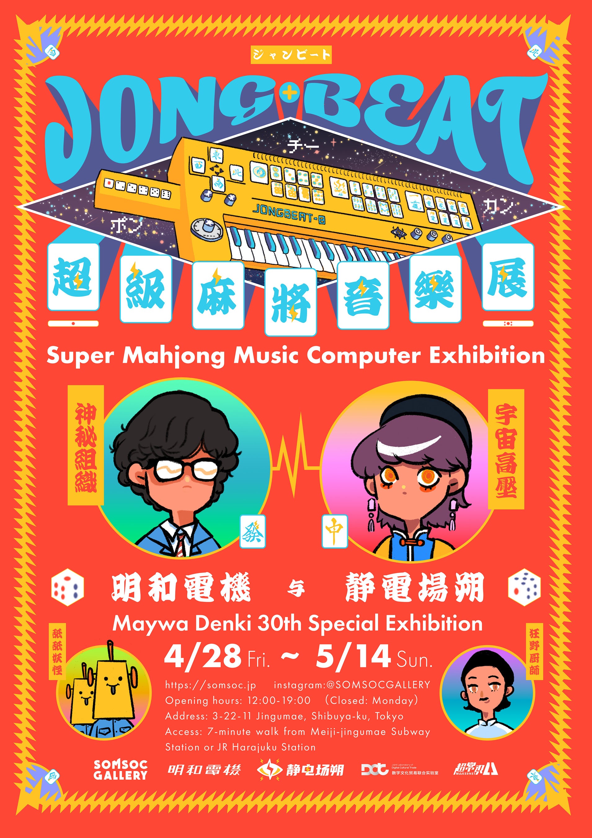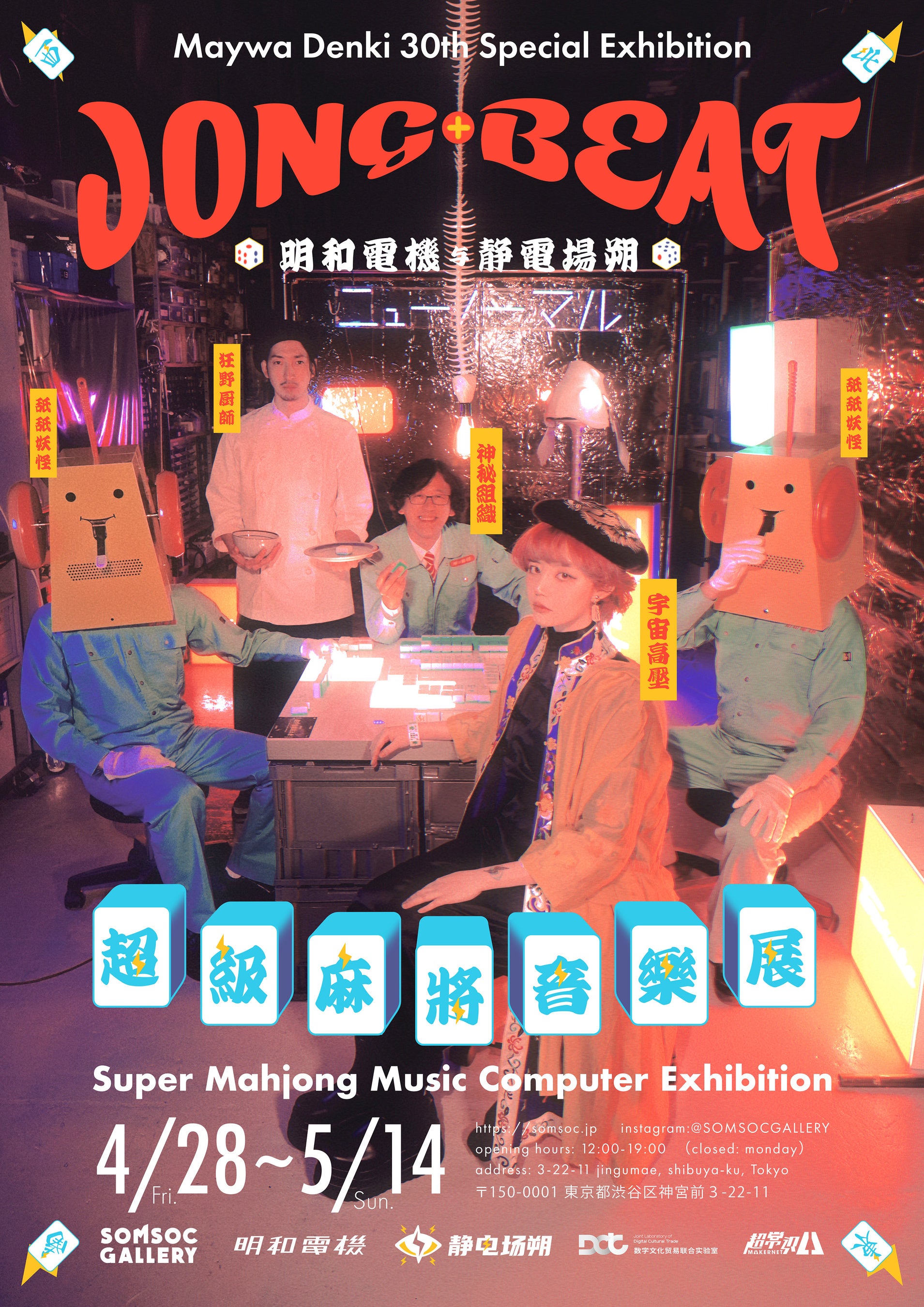 「明和電機」と、SOMSOC GALLERY所属のアーティスト兼ミュージシャン、静電場朔によって共同発明された麻雀型電子楽器「Jongbeat」と、同時に制作されたミュージックビデオ『教えて!超弩級電脳麻雀』並びに『四角宇宙』が、原宿のSOMSOC GALLERYで全世界先行公開・展示予定です。