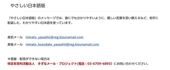 東京都港区「港区出産・子育て応援メール」にて『やさしい日本語版』配信開始。