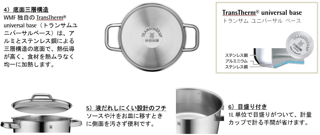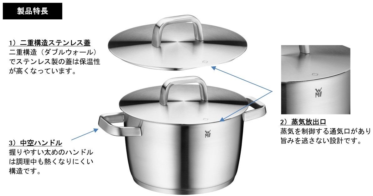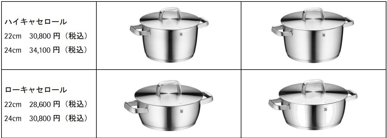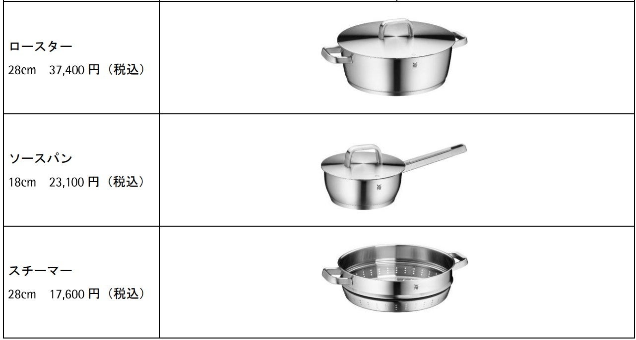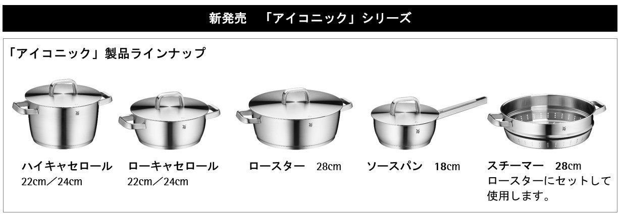 ガスやIHクッキングヒーターなど全ての熱源に対応し、食器洗浄機もお使いいただけるなど、毎日の料理に役立つ便利さを備えています。「アイコニック」シリーズは、全国の百貨店、WMFの公式オンラインショップおよび直営店にてご購入いただけます。
