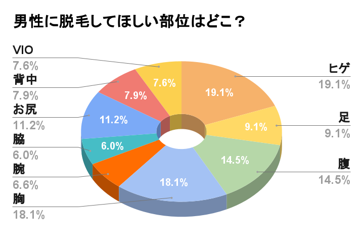 - 女性が男性に脱毛して欲しい部位TOP3はヒゲ、胸、腹