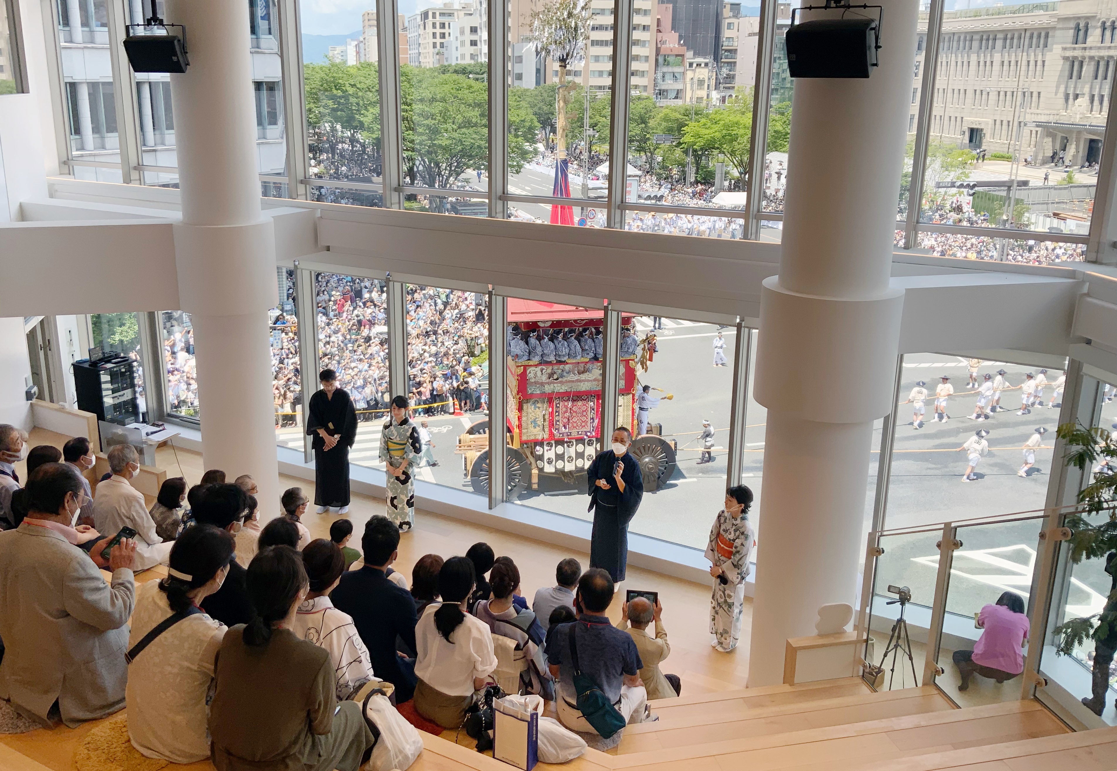 す。ここからは、日本三大祭りである祇園祭の山鉾巡行(例年7月開催。2020年以降はコロナ禍の影響で中止)の最大の見どころとなる「辻回し」を真正面に見下ろすことができ、現代における最高の桟敷席となるもの