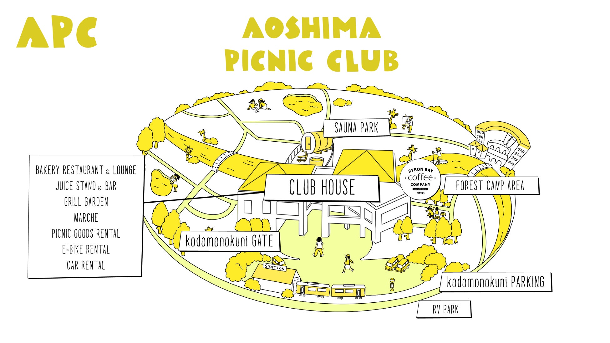 「AOSHIMA PICNIC CLUB」は、こどものくにビルドアッププロジェクトとして、2023年7月にスタートしました。2024年春のグランドオープンを目指し、段階的に施設・サービスを開始してきております。第一弾のByron Bay Coffee AOSHIMAに続き、第二弾としてGrill Garden、Juice Stand & Marche、Picnic Goods Rental、E-BIKE Rental、Camping car Rental、RV PARKのコンテンツをオープンしてきました。