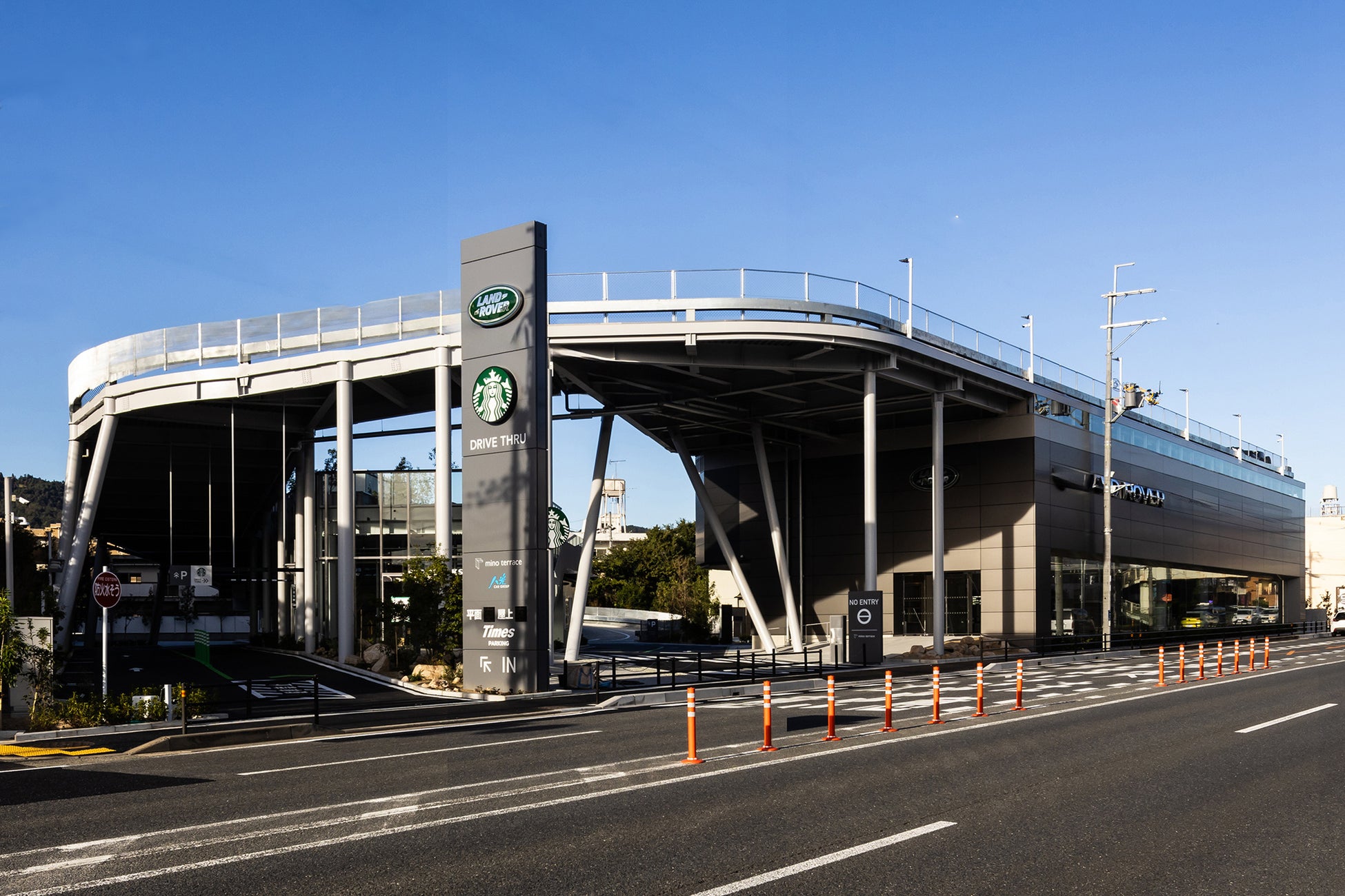 輸入車ディーラーが手掛ける複合施設が大阪・箕面に誕生。「ジャガーランドローバー箕面」のほか、緑やアートを感じる屋上テラスやスターバックスコーヒーが楽しめる「mino terrace」