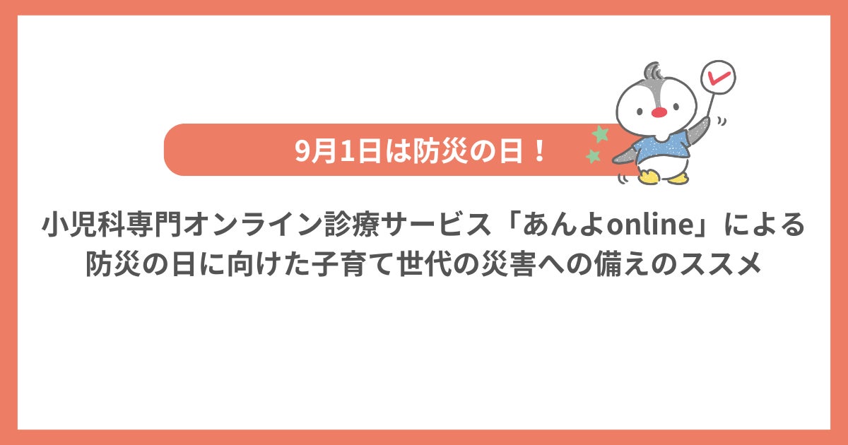 小児科専門オンライン診療サービス「あんよonline」による防災の日に向けた子育て世代の災害への備えのススメ