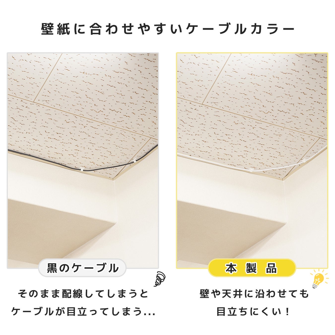 ホワイトのケーブルは壁にそって敷設をした場合でも目立ちにくく、室内の景観を損ないません。