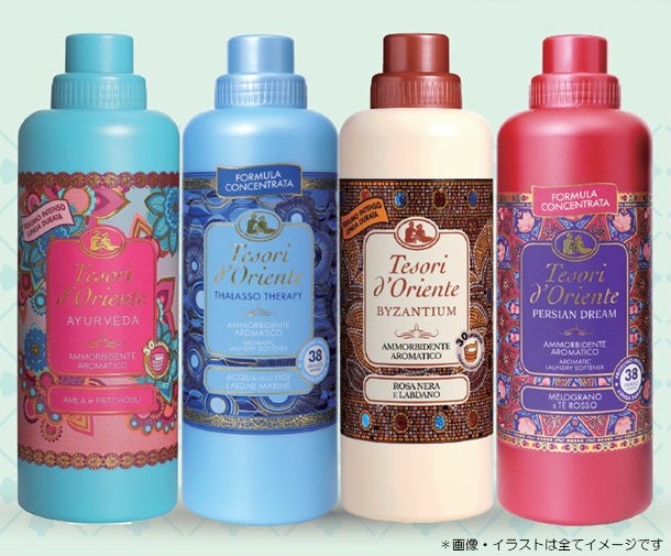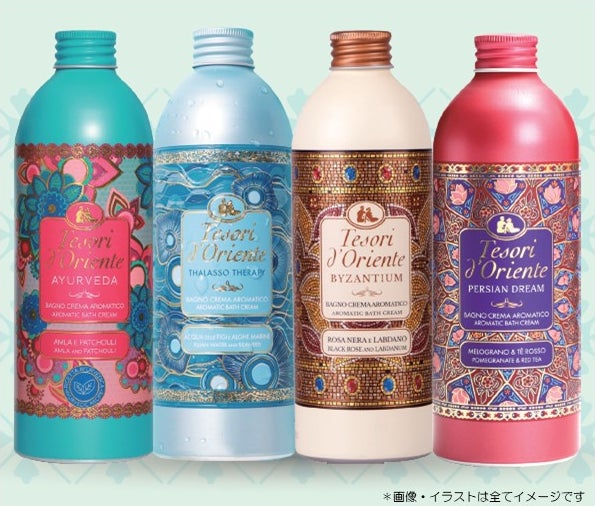 イタリアで25年以上の歴史を誇るブランド「テゾリ・ド・オリエンテ」。その多彩なコレクションのなかから、世界で年間2500万本 (*1)、実に1.3秒に1本売れているイタリアの国民的ベストセラー商品「フレグランスソフトナー(柔軟剤)」、同じく年間400万本 (*2)の販売実績を持つW機能アイテム「バスクリーム」の2商品が日本初上陸、他ラインナップに先駆けて2025年5月より先行発売いたします。