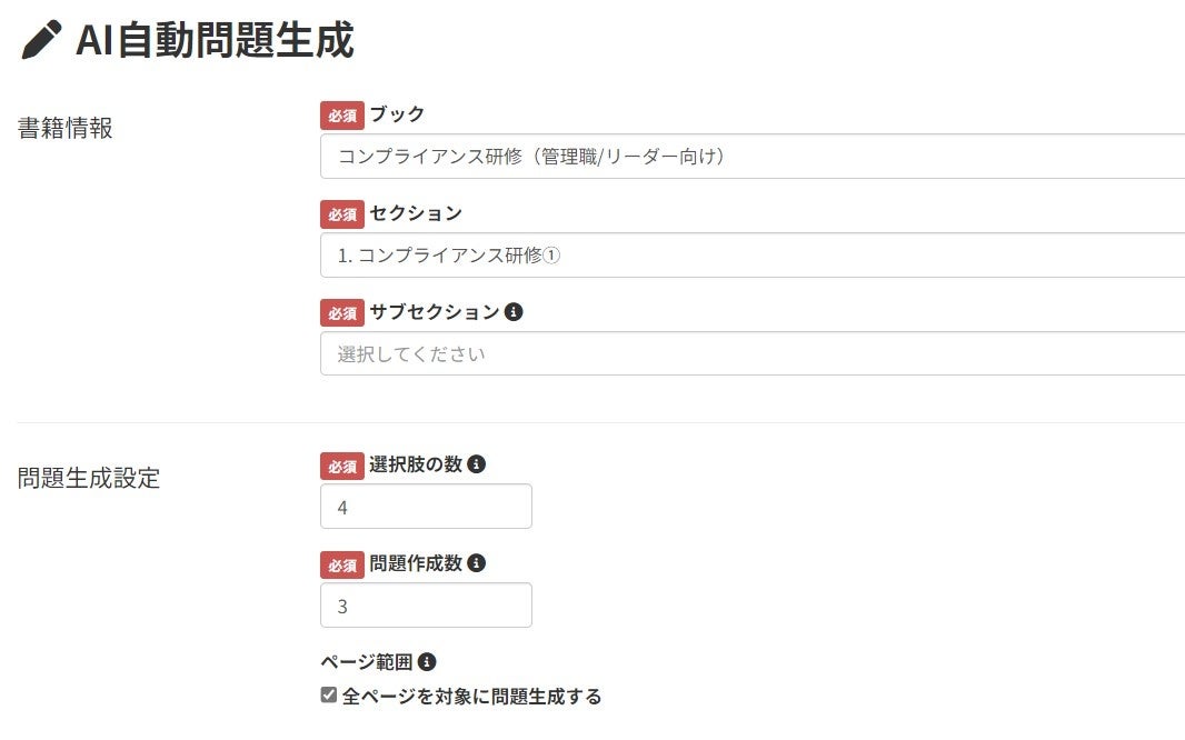 ■生成AIを活用し誰でも簡単に確認問題の作成ができ、研修作成の時間を大幅に削減!