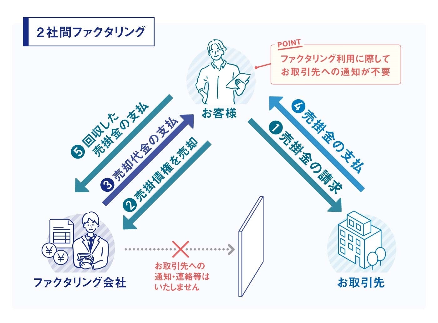 お客様とファクタリング会社の2者間で行う2社間ファクタリングの説明です。