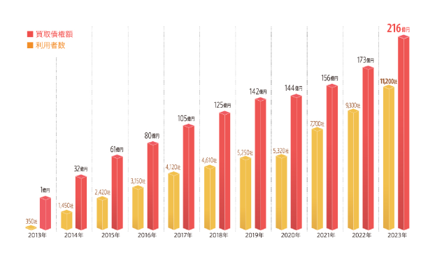 ビートレーディングの2023年度の取引実績は、利用者数11,200社、買取債権額216億円を達成し、過去最高の実績を残すことができました(2024年3月時点)。