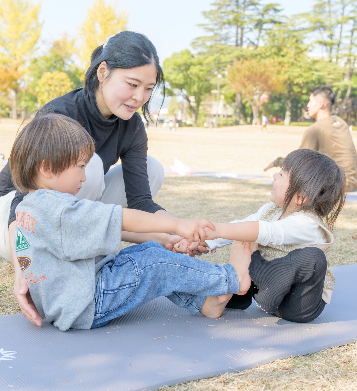 キッズスクールでは、トレーニングだけではなく、キッズヨガも取り入れています。現代のスマホの普及による子供の集中力低下に対して、瞑想を取り入れたキッズヨガ&親子ヨガを通して集中力が続く習慣を作っていきます。